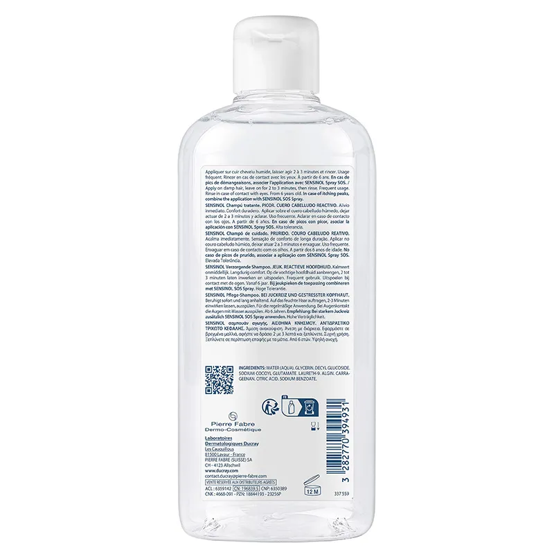 Ducray Sensinol Treatment Shampoo - gydomasis šampūnas, skirtas jautriai, sudirgusiai ir niežtinčiai galvos odai, 400 ml
