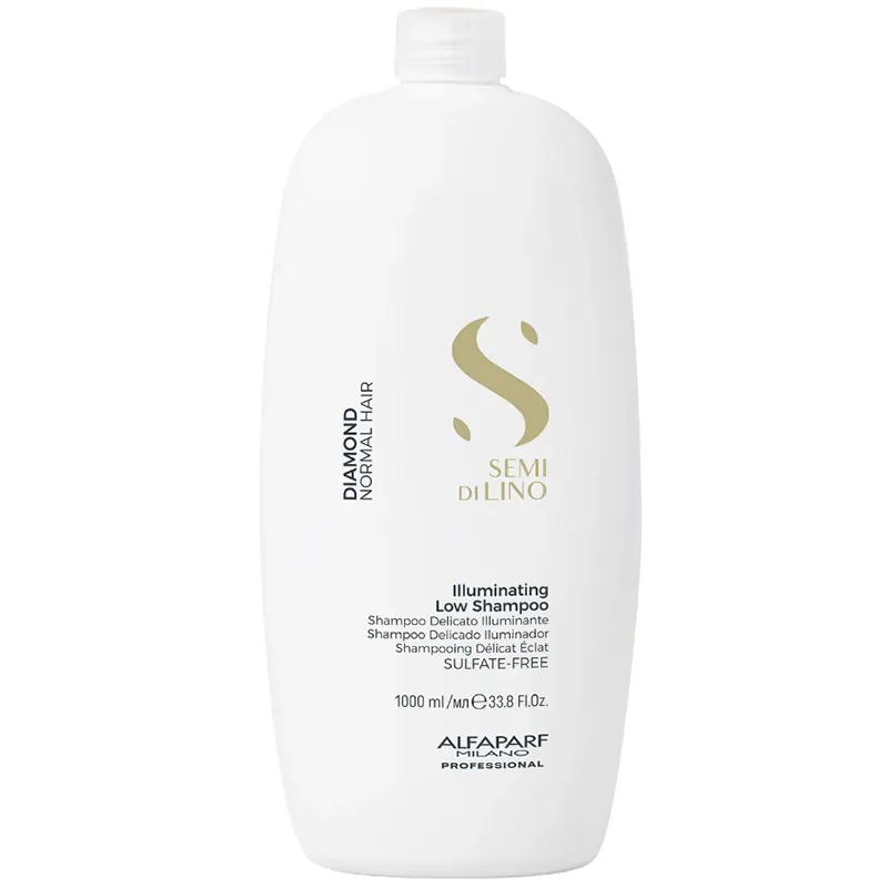 Alfaparf Milano Semi Di Lino Diamond Illuminating Low Shampoo – švelnus, mažai putojantis šampūnas, skirtas normaliems plaukams. Subalansuota formulė padeda švelniai išvalyti plaukus ir galvos odą, kartu suteikiant plaukams natūralaus žvilgesio, lengvumo ir glotnumo.