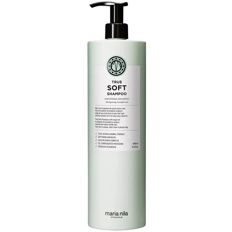 - Maria Nila True Soft – itin populiarus pasirinkimas sausiems plaukams dėl minkštumo ir glotnumo.
