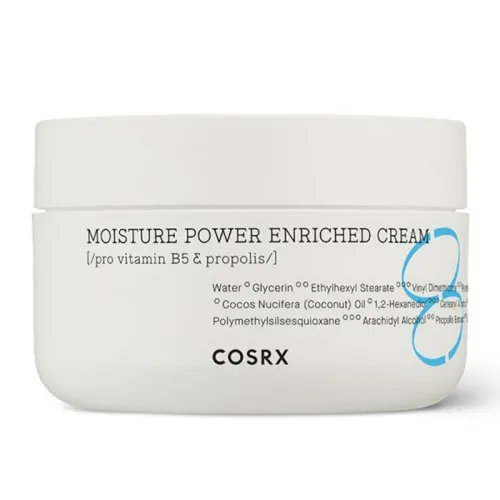 COSRX Hydrium Moisture Power Enriched Cream yra intensyviai drėkinamasis kremas, specialiai sukurtas sausai, dehidratuotai ir jautriai odai. Šis 50 ml tūrio produktas idealiai tinka kasdienei priežiūrai, norint atkurti odos drėgmės balansą, sustiprinti apsauginį barjerą ir suteikti ilgalaikį komforto jausmą. Kremas praturtintas hialurono rūgštimi, keramidais ir vitaminu B5, kurie giliai maitina odą ir padeda sulaikyti drėgmę, todėl oda tampa glotni, elastinga ir gyvybinga.