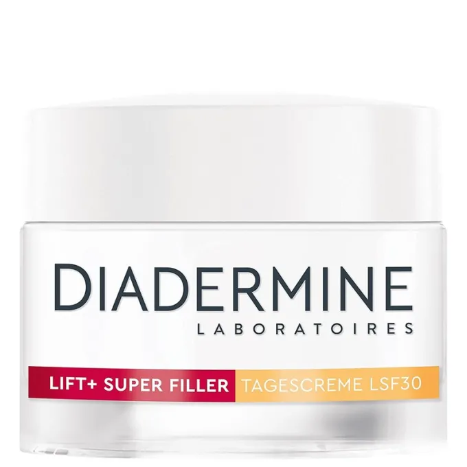 Diadermine Lift+ Super Filler Anti-Age Day Cream SPF30 yra intensyvaus poveikio dieninis kremas, sukurtas kovoti su raukšlėmis ir atstatyti odos stangrumą. Pagrindinis šio kremo akcentas – efektyvus užpildymo (angl. *filling*) efektas, švelninantis esamas raukšles. Be to, ši versija turi aukštą apsaugos nuo saulės faktorių (SPF 30).