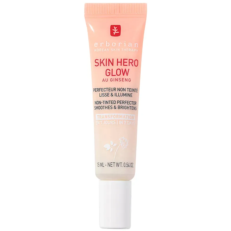 Erborian Skin Hero Glow Non Tinted Perfector Smoothes & Brightens - veido kremas, suteikiantis glass skin efektą, 15 ml